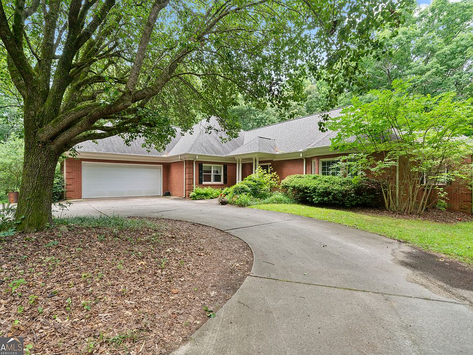 Situated on a 3.71-acres, this charming ranch style home is surrounded trees and total privacy! The property offers ample space for gardening, outdoor activities, or even future expansions. The home itself is classic 4 sided red brick in excellent condition with a beautifully craftsman style expanded porch completed within the last 10 years. The foyer opens into a living room with hardwood floors throughout with a breathtaking view to the large backyard. Just beside the living-room is the spacious master bedroom with a large master bathroom with dual sinks. The eat in kitchen combines the functionality of cooking and entertaining in a single space, with access to the tastefully built back porch! The breakfast nook is surrounded by large windows which offers a pleasant view of the sprawling backyard. Just outside of the kitchen are 2 secondary bedrooms with a full bathroom. The attic, accessed by a narrow staircase at the foyer, is a treasure trove of potential with a sky light. You could possibly make the 1/2 bath into a full bath that could be transformed into a stunning loft space which would be great for guests! In the backyard, there is a large shed that stays with the home. Plenty of space there to add for storage, workshop or even a nice playhouse! Overall, this house is a diamond in the rough, offering a wealth of opportunities for someone willing to invest time and resources into bringing it back to life with updates. The expansive land and solid structure provide a strong foundation for creating a dream home tailored to modern comforts while retaining its historical charm.