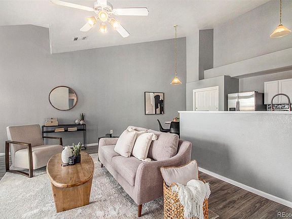 Priced to sell! BACK ON THE MARKET WITH NEW PRICE, NEW A/C and NEW FURNACE! Resort-style living! Gated Community! This beautiful, two-bedroom, two-bath move-in-ready townhouse-style condo boasts vaulted ceilings, spacious balcony overlooking the courtyard, and an open, floor-plan with brand new flooring and new paint. Open concept kitchen with stainless steel appliances, updated cabinets, countertops and plenty of cabinet space with attached dining room. The expansive living room engulfs all the natural light and includes a gas fireplace, access to balcony as well as a spacious niche that's perfect for a home office, gaming or gym nook. Primary bedroom with private bath. Upgraded washer and dryer in unit. Bring your car and toys as there is plenty of room for them in the attached garage and additional storage closet off the balcony. Walk-score is amazing on this home! You can leave your car at home and access the RTD Crossroads Transit Center (rail and bus) which offers the perfect blend of convenience, comfort, and style. Enjoy the fabulous amenities, restaurants and parks as well as the pool, hot tub, and clubhouse, which includes a gym and a lovely space you can reserve for events! This unit is priced to sell and won't last long!