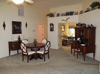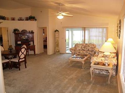 This home is getting a NEW roof April 2015 & being sold mostly furnished. Nice open floor plan w/ cathedral ceilings in Living & Dining Room as well as the Master Bedroom. The Kitchen is very light & bright & offers newer quartz counter tops, stainless steel appliances, white cabinetry & tile flooring. The laundry room is directly off the kitchen & includes the washer & dryer as well as the freezer in the garage with also stay. The Master Bedroom has a large walk-in closet, sliders that enter to the glassed in & enclosed porch. The Master Bath includes a large soaking tub, tiled shower & double sink vanity with cultured marble top & plenty of room. The Guest Bedroom has good closet space & the Family Room has a vaulted ceiling & a real cozy feeling ideal for relaxing while watching your favorite movie! The rear porch has sliders off the Master w/ double pane windows, high ceilings and is a great place to entertain!