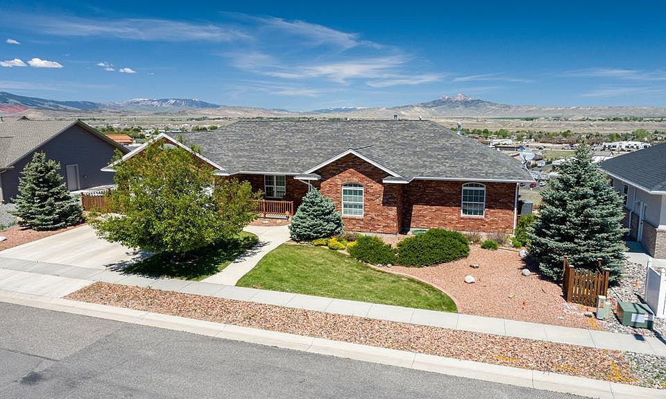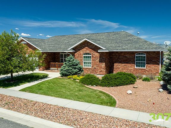 Custom all-brick ranch style home w/ walkout basement on rim lot. Enjoy scenic mountain views from the living room and enclosed porch/sunroom! Open floor plan is ideal for entertaining. Over-sized finished & heated 2 car garage w/ hobby area. Maintenance free exterior landscaped yard. Many upgrades! Newer furnace. Reduced rate water program in summer for automatic yard sprinkler system. Must see!