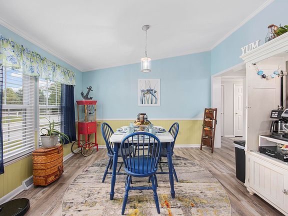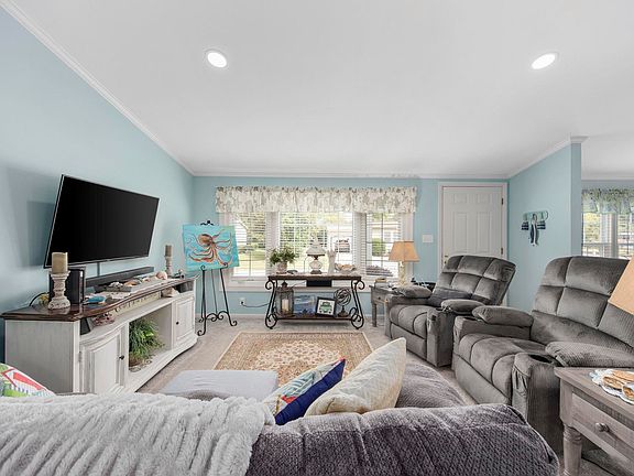 Dreaming of owning a better-than-new, fully updated home in a 55+ community just a short drive from the beach? This is your chance! Don’t miss out! Welcome to this stunning, fully renovated home in the highly sought-after Ocean Pines community, conveniently located east of Highway 17 Bypass in Murrells Inlet and just a golf cart ride to the beach. As you step through the welcoming covered front porch, you’ll be greeted by an abundance of natural light in this spectacular open-concept home, which feels like an HGTV model home. To the left of the foyer is a charming formal dining room. The spacious living room features cathedral ceilings, a high-end ceiling fan, and upgraded new carpet, creating a cozy yet welcoming atmosphere. Adjacent to the living room is an informal eating area, currently used as a reading nook, offering flexibility and comfort. The chef’s kitchen has been completely transformed, featuring high-grade granite countertops, stainless steel appliances, and distressed white solid wood cabinets. The breakfast bar peninsula is perfect for casual meals or entertaining. Additionally, all windows, including the bay window in the living room, have been replaced with energy-efficient double-pane windows. Throughout the kitchen, dining area, hallway, and wet areas, you'll find waterproof LVT luxury wood flooring for both style and durability. This home offers two spacious guest bedrooms, each with walk-in closets. The updated guest bathroom boasts a new granite countertop, white distressed-style vanities, and a combination tub/shower with glass shower doors. The informal dining area opens to an oversized, climate-controlled Carolina Room, perfect for enjoying year-round comfort. Outside, the covered rear porch provides access to the meticulously maintained backyard, which includes a 1,293 sq. ft. cement patio, extended parking area, detached shed, and carport. The beautifully landscaped yard features mulched flower beds, vibrant plantings, and mature trees, offering a peaceful and private outdoor retreat. Unlike typical homes, this home features ¾” sheetrock throughout—no strips or wall paneling in sight! The entire home has been professionally painted and decorated in a coastal beach theme, with crown moldings adding a touch of elegance throughout. Additionally, the roof has been replaced with 30-year architectural shingles, and 4” gutters and downspouts have been installed for durability. The HVAC system was just replaced in August 2024 and comes with a 10-year warranty. Experience the best of coastal retirement living in Ocean Pines, a beautiful 55+ community where every day offers opportunities for fun, relaxation, and recreation. Just a short golf cart ride to the beach, MarshWalk, Garden City Pier, shopping, dining, and all the attractions of the greater Myrtle Beach area and the Grand Strand. This rare find won’t last long! Contact the listing agent or have your buyer’s agent schedule a showing today! All measurements and square footage are approximate and not guaranteed. Buyer is responsible for verification.