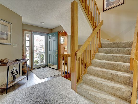 What a beautiful setting this townhouse condo has, a mother nature lover's dream! with a short walk to a nature trail and a view of the river! As you enter this home you'll be greeted by the great room with giant windows for that spectular view, winter summer, spring and fall all right there for you to enjoy everyday! There a small bar off the kitchen, from there you can enter the kitchen dining room combo with a slider out to the new maintence free deck to enjoy your morning coffee with birds chirping in the background. The kitchen has a great amount of cabinets and stainless steel appliances . It's a straight shot from the 2 stall garage into the kitchen to put those groceries away. As you go up the stairs there's a loft area, which would be a great space for an office. There are 2 large bedrooms upstairs and each bedroom has it's own private full bath. The main level does have a half bath. The mostly finished lower level, whch is a walk out, has a large family room, another full bathroom, a bedroom and storage room. What else could you ask for? Come take a look! Seller is offering a $3000 flooring allowance with an acceptable offer.
