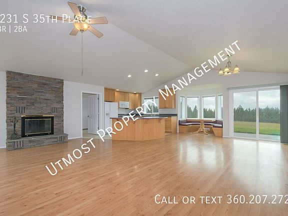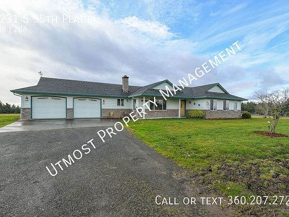 Private drive to your lovely 3 bedroom 2.5 bathroom home in Ridgefield all on one level with open concept living space and wood burning stove. Kitchen is colorful with large island and oversized breakfast nook with custom seating and table. Open landscape with rolling hills, lots of tree in the background and gorgeous sunset views. Septic and Well. 2 car garage. Mudroom with washer and dryer, powder bath and lots of storage space. Large master bedroom has French doors and the master bathroom features a jet tub. Bonus refrigerator in garage. AC, Pets welcome. No Smoking home. A few more details to consider...the barn/shop next to the house is NOT included in rental. All washer and dryer repairs paid by tenant as the washer and dryer are provided as a courtesy only. NOTE: Private Drive off Hillhurst Rd so follow the gravel road all the way until the end as this home is the final stop and please drive slowly. Move in Reay: Now Rent: $2650.00 Pet Rent: $50 per pet (2 pet maximum) Refundable Security Deposit: $2500 Additional Deposit for Pets: $500 each (2 pet maximum) Non-Refundable Pet Inspection fee: $89.00 Non-Refundable Move in Fee: $700.00 Non-Refundable Admin Fee: $425.00 Application Fee: $50 per person over 18 Professionally Managed by Utmost Property Management 1905 SE 192nd Ave Suite 203B Camas, WA 98607 Hurry, this one won't last.... Ac Septic Well