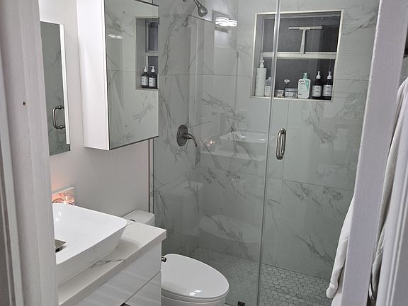 This is a gut renovated unit with wood floors, a brand new kitchen with stainless steel appliances, a new bathroom with glass doors, and 2 assigned parking spaces. The bedrooms are updated with new ceiling fans that have adjustable lights. Each bedroom has large closets and they are equally sized. The laundry room is private to the apartment. There is also a bike room wide enough for 3 or 4 bikes plus some storage room. There are bars with safety release latches on the windows for added security. This apartment is offered furnished for $2,950 If you are looking for a beautiful home.. you have found it. Call to schedule a time to see it before it is gone. Renter is responsible for all utilities. Looking for a 1 year lease but willing to discuss other terms.