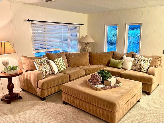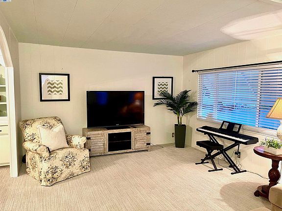 Beautifully updated and spacious home in Hacienda Mobile Home Park centrally located in this wonderful 55+ Community in Pleasanton not only close to the amenities of the Park, but also everything Pleasanton has to offer. Recently updated with all new windows and a large slider, nicely updated kitchen that opens to the Family Room with granite counters, newer appliances, painted cabinetry, brightly painted throughout, newly updated Bathrooms and a Luxurious Spacious Primary Bath with 2 Vanities. This light and bright home really does feel cozy but very spacious at the same time from the open Living Room , to the stately Dinning Room with Built In Cabinetry, to the two extremely spacious Bedrooms, to the lovely deck for outdoor entertaining . Located close to the Club House and Pool and everything a buyer is looking for when looking fo 55+ affordable living communities in the Bay Area. Don't miss this opportunity !!