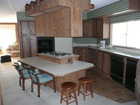 Senior Mobile Home Park in Pleasanton Spacious and cozy unit with open floor plan and lots of windows. Ready to move in. Two bedrooms and two bathrooms with approx. 1600sqft. living space. Newer items are: 2007 Furnace, Convection microwave and oven, 2005 roof, 2008 outside power wash and paint, 2008 outside porch and stairs carpet. all Appliances (as-is) and most of the furniture are included.