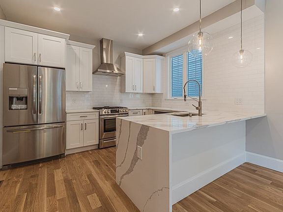 Meticulously gut renovated from top to bottom, this four unit home is along the Southwest corridor of Boston's best neighborhood, Jamaica Plain. This 2 bedroom unit features a private entrance into your gorgeous open layout living dining space with beautiful windows throughout. With additional pantry and closet space, this first floor also features a half bathroom and laundry room. Downstairs you find two bedrooms and a large bathroom with top of the line finishes. Gorgeous features including white oak floors, shaker cabinets, brushed nickel finishes, and open floor plans to suit your every need. Chef inspired kitchen with stainless steel appliances, Calcutta quartz countertops with a waterfall edge, West Elm lighting, and plenty of gorgeous cabinet space. So much to offer with in-unit laundry, shared yard, surround sound speakers, and programmable thermostats. Near the T and the SW Corridor bike-path, these homes bring together the best of easy access to downtown and the outdoors.