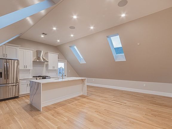 - Kit Dscrp: Countertops - Stone/Granite/Solid, Recessed Lighting, Stainless Steel Appliances, Closet/Cabinets - Custom Built, Kitchen Island, Open Floor Plan, Flooring - Wood, Main Level, Remodeled, Skylight, Lighting - Pendant, Ceiling - Vaulted