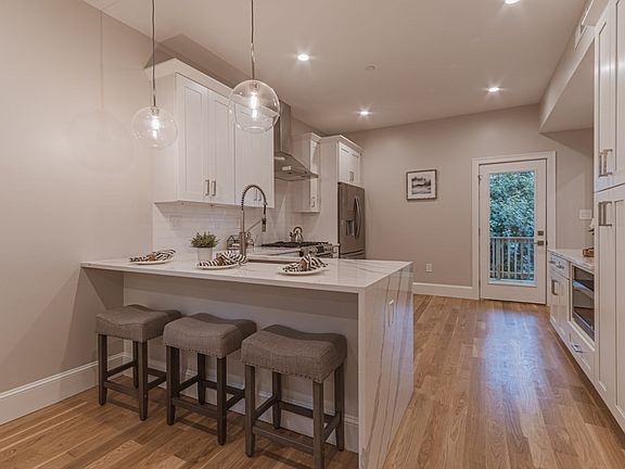 Meticulously gut renovated from top to bottom, this four unit home is along the Southwest corridor of Boston's best neighborhood, Jamaica Plain. This 3 bedroom unit features a primary suite w/walk-in closet, marble floored bathroom, and a front deck perfect for your morning coffee or evening cocktail. Two additional good sized bedrooms and another full bathroom with tub make this a perfect, well rounded and spacious unit. Gorgeous features including white oak floors, shaker cabinets, brushed nickel finishes, and open floor plans to suit your every need. Chef inspired kitchen with stainless steel appliances, Calcutta quartz countertops with a waterfall edge, West Elm lighting, and plenty of gorgeous cabinet space. So much to offer with in-unit laundry, two private outdoor deck spaces, surround sound speakers, programmable thermostats, and city views. Near the T and the SW Corridor bike-path, these homes bring together the best of easy access to downtown and enjoyment of the outdoors.