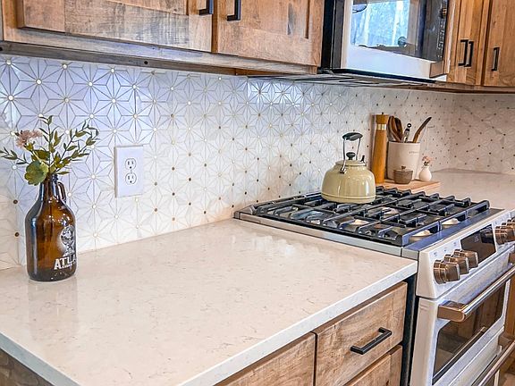 Step outside to a breathtaking backyard retreat, perfect for entertaining. Enjoy the expansive deck and lower patio, ideal for gatherings or quiet evenings surrounded by nature. Backing to a serene tree-lined view, this private outdoor oasis provides the perfect blend of relaxation and sophistication. This is one you don't want to miss!! Full list of updates available. Schedule your showing today!