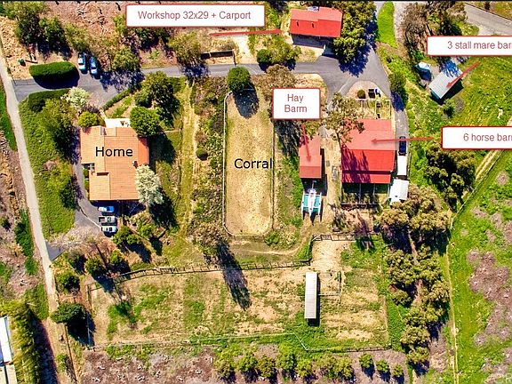 About this home This home is currently ocupied by owner Rare opportunity to own some of the best land in Bonsall This one of a kind property boasts panoramic views of the mountains and valley. 21+ Acres, Zoned A70 with "W" Animal designation. 1 Mediterranean home, a (6) Horse stable barn, a Hay Barn, and a Workshop 32 x 29 with extra high covered RV Space, Also a 2 stall mare barn, & corral. Two inch water line with irrigation systems. Neighborhoods: Bonsall Equipment: Dryer, Range/Oven, Satellite Dish, Shed(s), Washer Other Fees: 0 Sewer: Septic Installed Topography: GSL