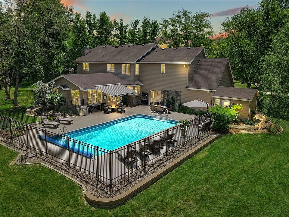 Welcome to this stunning property nestled on 2.59 acres of pristine wooded land, where luxury + nature seamlessly blend together. With 4 bedrooms + 4 bathrooms, this immaculate home offers almost 3,900 sq ft of finished living space. The kitchen is a chef's dream, featuring granite backsplash + counters, a wine fridge, a gas stove, a walk-in pantry, + top-of-the-line appliances. The four seasons room boasts a stacked stone gas fireplace, creating a cozy ambiance year-round. The primary ensuite has heated tile floors, a soothing soaking tub, comfort-height sinks, + a private bathroom with a glass shower. The connected office/sitting room provides a quiet space for work or reading a book. Step outside + discover your private oasis. The inground pool beckons you on summer days, accompanied by the super convenient pool house w/ a half bath. Don’t miss the treehouse, offering 360-degree views of the picturesque landscape through its’ 50 antique windows. Crafted w/ reclaimed materials, this space provides a cozy escape from the world. Other features of the home include: central vac, 2x6 construction, 10ft ceilings, expansive dining room w/fireplace, first-floor private office, finished lower level w/ sauna, fenced garden beds, + immaculate landscaping. The home is on pavement and a quick 10 minute drive to Jordan Creek. This well-cared-for home also includes a home warranty for your peace of mind. Bonus! The new incredible price will give you unbeatable value for your investment.
