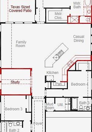 Oversized covered patioQuiet private driveFour bedroomsTwo large walk-in closetsPrivate studyOpen-concept kitchenMassive island