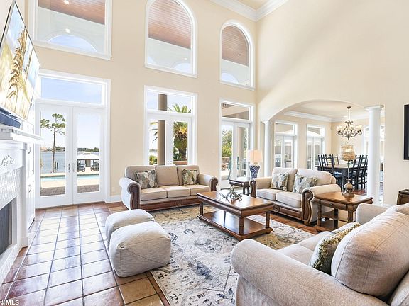 Nestled on picturesque Ono Island, a private and gated community, this stunning waterfront property represents an exceptional opportunity for those seeking the perfect blend of comfort and breathtaking views. Situated along Old River, this estate offers an idyllic retreat with views of the Gulf of Mexico. As you enter this architectural masterpiece you will notice the expansive windows flooding the interior with an abundance of natural light, creating a warm and welcoming ambiance throughout. The seamless integration of indoor and outdoor living creates an inviting atmosphere, perfect for entertaining guests or enjoying quiet evenings with the family, with the main living offering panoramic views of Old River. As you move outside onto the spacious patio, you'll discover an outdoor oasis complete with a heated pool, relaxing spa, outdoor kitchen, and a beautifully landscaped backyard with a large private beach. The master suite is a true retreat, boasting breathtaking views of Old River and an en-suite bathroom complete with a jetted tub, a walk-in shower, and his & her walk-in closets. The four additional bedrooms each with ensuite bathrooms provide ample space for family and friends, ensuring everyone has a comfortable and private sanctuary to call their own. This exceptional property also offers a range of desirable features, including an additional living area located on the lower level featuring a kitchenette, entertainment area, and bunk room. Additional amenities include a large 2-car garage with workshop, a private elevator servicing all levels of the home, and a washer & dryer on all three floors. Explore the nearby waterways from the 40’ X 40’ covered boat house featuring a 36’ X 16’ boat slip with a 10,000lb lift, jet ski lift, fish cleaning station, and storage room. *Pre-recorded walkthrough videos available upon request.*