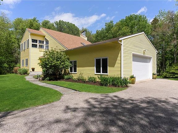 Welcome home to 3232 South County Trail! This stunning contemporary is just ready for you to move in. Nestled on just over five acres you will find all that nature has to offer including your own pond. Privacy abounds on all sides creating the perfect balance of peace and tranquility. Imagine sitting out on your master bedroom balcony overlooking the pond and wildlife with a cup of coffee or entertaining friends and family on the lovely walkout deck that spans the whole back of the house. Inside you will find four bedrooms, recently updated three full bathrooms. Cathedral ceilings and large open windows allow the most gorgeous natural light to shine in. The open concept kitchen has a great flow into dining area and living room with a wood burning fireplace. A room right off of the front door could be a perfect space for a dining room, den or home office. Down the hall you'll find two other bedrooms with a full bathroom and first floor laundry. As you ascend the gorgeous wood staircase to the second level, you will find the master en suite with private fireplace, balcony and spacious bathroom. Off of that, is a great bedroom that would be perfect for an office or nursery. A swinging door off the kitchen gives you access to the attached two car garage and downstairs recreational space. Very spacious with brand new carpet and walkout doors to the backyard. Perfectly versatile for a playroom, media space, or hangout area. Close to parks, farms, URI, highway access and more!