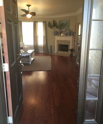 1740sqft 3/2 Open Floor Plan, hardwood, tile, quartz countertops, triple-crown, stainless appliances, along with numerous other custom features. Covered back porch overlooking green space. Home has 9 smooth ceilings, large rooms, master bath, fireplace etc. Double garage, privacy fenced yard and custom landscaping complete this conveniently located home very close to beaches, recreation, & more.