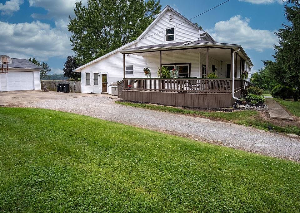 Beautifully Remodeled 2 Story home with wrap porch. 3-4 Bedroom Home, (2) 2 Car garages with separate driveway accesses. All on 2 acres. Updates Include: Drywall, Windows, Furnace rebuilt 2017, Roof 2014, Custom Kitchen Cabinets W/Granite Counters, Baths, First Floor Laundry with Custom Built Ins, Hot Water on Demand 2020, First Floor Master, Walk in Closet with Built Ins, Fenced Yard, Propane Fireplace. Carpet in Sunroom to be replaced. Delco Water with a well for watering outside. See Agent To Agent Remarks.