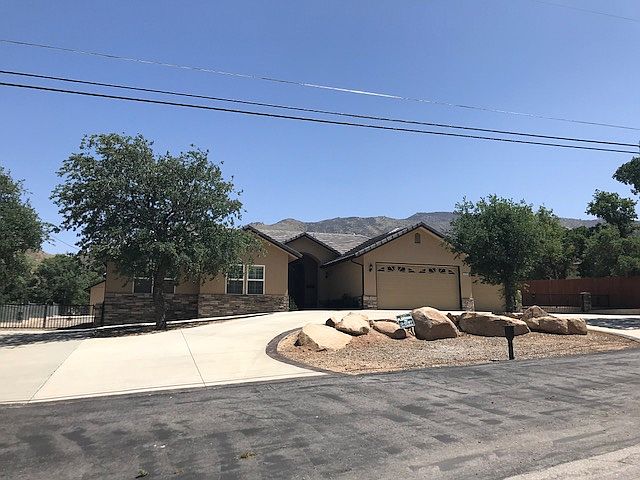 STUNNING home in Squirrel Valley with 2789 sf design boasts a total of 4 nicely sized bedrooms, one used as an office with hardwood floors, along with one spacious master suite and two full and one half bath. With a split bedroom design, you and your guests will have plenty of privacy. The spacious master suite offers a large walk-in closet, French doors to the back patio and plantation shutters. The master bath has double sinks, an open shower, and a spa tub. The shower has 2 heads and body sprays. The central living room showcases hard wood floors, a 9-foot ceiling with two fans, pellet fireplace that is encased in tile and French doors entering to the courtyard in the back with stellar views. The gourmet kitchen features granite counters, top of the line Kitchen aid appliances, large walk in pantry and beautiful tile flooring. Add in a laundry room with cabinets and one large sink. House offers crown molding throughout the house, along with two air conditioning units, one specific for the master suite and the other for the rest of the home. Top it all off with a 3 car extra deep garage with custom shelving for great storage. The exterior front landscaping is dramatic with a cement circular driveway, landscaped with large boulders, mature oak trees, and black wrought iron gates and fencing affording the pride of ownership. The center paver courtyard allows for easy entertaining, BBQ area, and excellent mountain views. The exterior also offers gutters all around the residence, fencing around the property, and a low maintenance yard with cement and rock that offers a quiet place to relax out of the elements. BONUS - This property offers a 900-sf finished detached workshop with air conditioning and heating that can be used in multiple ways. Centrally located for easy access to Lake Isabella and all the recreational activities the area has to offer.