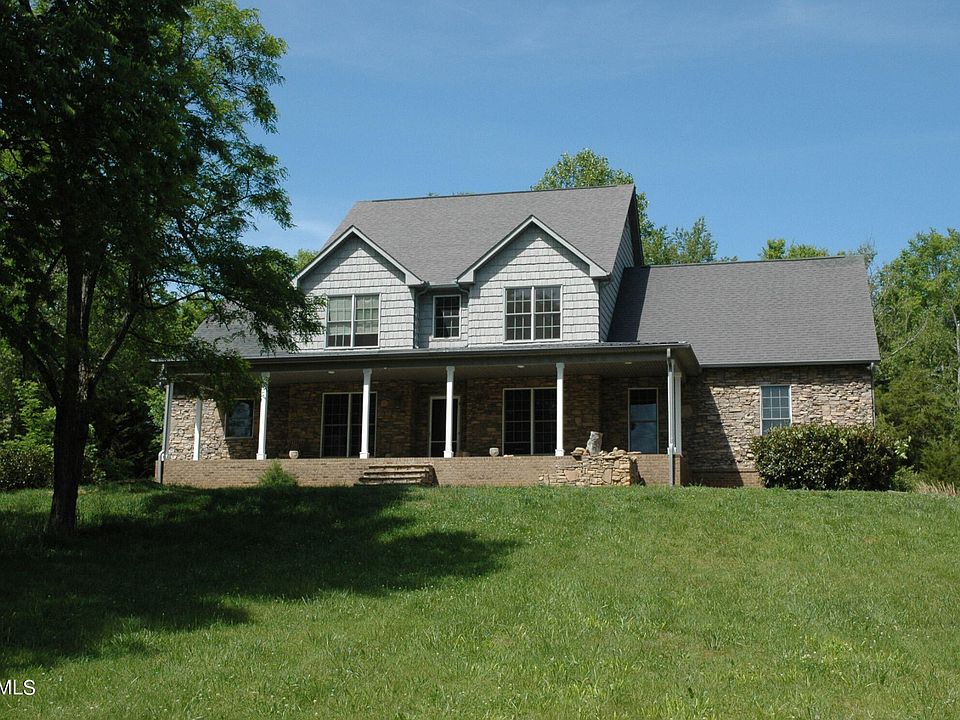 This beautiful custom built home, set on 5.49 private acres, has approximately 3000 sq. ft finished living space. Features beautiful wood detail throughout ; owners' suite on main level; 2 bedrooms and 1 music room with closet on upper level plus bonus room. 2 car side entry attached garage. Also a 50' x 30' ft. detached workshop/garage. Home is brick with stone; has large covered front porch and a large covered porch across the back of the home. There is utility water; 2 septic tanks, electric heat and air, which goes to propane when temperature is below 32 degrees fahrenheit . Seller needs to find suitable housing so possession needs to be whenever she can close on her new home after contract on this property is agreed upon. Home features wonderful details that include custom kitchen cabinets. See documents for more detail about this listing.