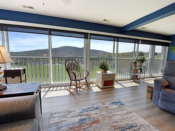 Fabulous Azalea Cove Condo! 2BR,2.5 BA with Sensational Southern exposure view of Lake Chatuge and surrounding Mountains. This 2000+ Sq Ft condominium unit has beautiful Cherry hardwood floors, Tiled baths, Archways, GORGEOUS built-in entertainment center and glassed display wall, and Crown Molding.The kitchen has Granite countertops, pass-through window to the enclosed finished Sunroom that has its own thermostat for heating and cooling. This space features walls of windows with sensational views. The floorpan flows so wonderfully with doorways and access with ease throughout. There is an Office area just off the sunroom, Dining area before the kitchen, Beautiful Living room w/ electric log fireplace. Generous Guest bedroom with large closet and private bath. Primary BR has room for King sized furniture, Large walk-in closet, granite counter in bath, shower. Beautifully appointed living, close to town, convenient to shopping, hospital, doctors, and recreation. Fiber Optics!! 2 Car parking under building plus room for guests. Fee covered the Exterior of the building, The patio area, Water, septic, garbage, and maintenance of the grounds. Lovely Living.