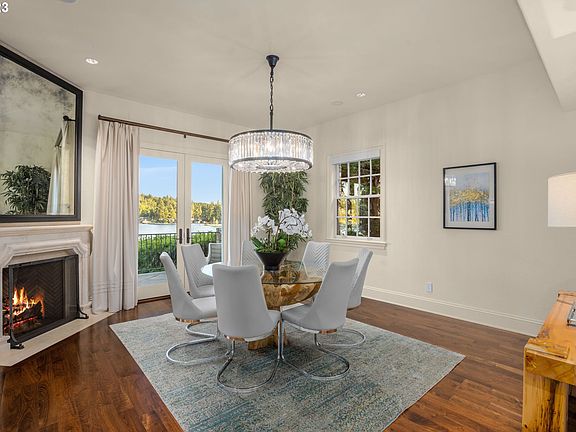 Love the sun? Then you will love waterfront living on the north shore of Lake Oswego. Truly the best of both types of views from the slate lakeside patio and boathouse and then up to your primary suite with sweeping elevated views of the lake. This home is like no other with 4 Ensuites, 7 fireplaces, indoor pool, outdoor built in spa, sauna, theater, wine cellar, and a rotunda library. Three of the suites enjoy French doors and balconies overlooking the lake, two of those suites have fireplaces, and the primary suite enjoys a cozy sitting room with the arguably best view in Lake Oswego! From the moment you watch the gates open, it is clear you have arrived at your luxury fortress with stone and gas lamps . . . open the doors and take in the drama of a wall of windows and twin fireplaces in the great room. This home is not only irreplaceable; it would also be a fortune to replicate.