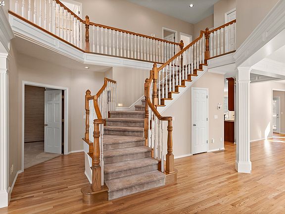 Generous price improvement. Prestigious Bauer Woods Estates traditional has beautifully updated kitchen with remodeled open-concept family & dining for a more contemporary layout, not typical of the neighborhood & fabulous for entertaining. The traditional 2-story foyer leads to both formal living w/ gas fireplace, perfect for a cozy conversational space & the updated open concept formal family/formal dining with 2nd gas fireplace and built-ins for more modern living & makes hosting family and friends effortless. Gorgeous true hardwood floors, high ceilings & floor-to-ceiling windows bring natural light throughout the main level. Easy main level living & versatility with den or 5th bedroom, full bath & added 22X19 bonus room with separate entrance to paver patio & gorgeous back yard. The updated kitchen has quartz countertops, a cook island with a gas cooktop, double ovens, counter level built-in microwave, walk-in pantry, rich cabinetry, and a spacious nook with eating bar & access to the back deck for BBQing and outdoor entertaining. Spacious primary suite with tray ceiling has walk-in closet, double vanity, jetted tub, walk-in shower and separate toilet with three additional bedrooms on same 2nd-level including bedroom with extra 14X9 SF loft and Jack & Jill bedroom/bath concept. Convenient, 2nd-level laundry with sink and tons of both counter and cabinet space. Both elegant and private backyard with deck, paver patio, lawn area, gorgeous perennial/ floral accents, and shade trees. 2016 Presidential roof, newer gutters(last 2 years), 2-system heating & 3-systems AC for efficiency, oversized 3-car garage with easy main level access directly into the kitchen. Easy commute to Bethany, Cedar Mill & NW Portland’s shopping & restaurants, Intel & Nike, Sunset transit & Hwy 26. Set above the street on extra large, 13,504SF corner lot w/ views of the coastal range. Don't let the front stairs scare you away as garage has main level entry to kitchen & walkway to front door.