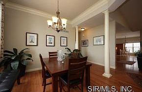 Freeburg Schools! Gorgeous Split Bedroom Floor Plan Is Open & Features Soaring Vaulted 9 Ceilings. Hardwood Floors Welcome You Into The Foyer & Continues Into The Dr, Kit, Hearth Room & The Lr W/ Large Windows Letting In Lots of Natural Light. The Formal Dr Offers 11 Ceilings W/ Crown Molding. The Fabulous Kit Is A Chefs Dream. Features Include Ss Appliances, 42 Cabinets W/ A Soft Maple/ Chocolate Glaze & Are Finished W/ Crown Molding & Have Soft Close Drawers. Granite Countertops & A Large Island For Easy Prep. Enjoy Lots of Time In The Hearth Room W/ A Fp & Lots of Windows. A Wonderful Master Bedroom Is Your Get-Away W/ Tray Ceilings & Huge Walk-In Closet. Walk Out To The 10X30 Covered Patio Overlooking The Large, Private Backyard. The Master Bath Features His & Hers Vanities, Large Tub & Separate Shower. You Will Love Spending Time In The Beautifully Landscaped Yard W/ Black Iron Look Fence On Over Acre. Additional Patio Space Off The Covered Patio For Lots of Entertaining.