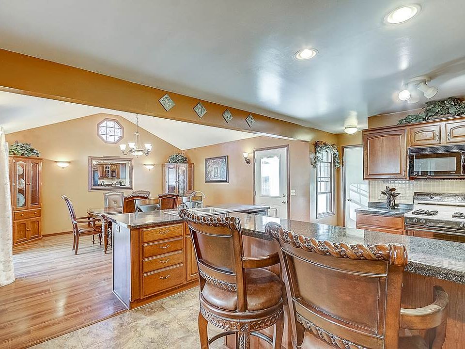 OPEN-CONCEPT KITCHEN/DINING! A chef's kitchen for sure! Featuring kitchen w/ center island & sink, additional prep sink & gas range w/ XL oven that bakers will love! Plus you'll appreciate this home's great neighborhood, large (and entertaining) backyard & easy access to the Interstate. Wood-burning fireplace. Many updates including new driveway, new roof, new windows, new garage door, new eaves & facia , downspouts, & a new sump pump. Extra space for entertaining in lower level with dry bar, fridge, & electric fireplace. Enjoy the outdoors with a new above-ground pool/deck, & spacious backyard. See for yourself all this home has to offer!