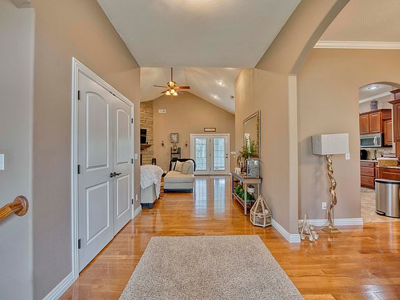 QUALITY, custom built, all brick, walkout basement home in the highly sought after Fox Grape subdivision offering just under 3800 sq ft of living space! Tall ceilings throughout the main floor as well as the basement. Crown molding on both levels. Beautiful 3/4 inch hardwoods on the main floor. Formal dining room. Living room with vaulted ceilings and gas fireplace that is open to the kitchen. The kitchen boasts of lots of cabinetry, breakfast bar, informal dining area, and stainless appliances that includes DOUBLE CONVECTION OVENS. The primary suite is spacious with a door leading to the patio! The primary bathroom has dual vanities, jetted tub, big walk-in shower w/dual shower heads, water closet and nice sized walk-in closet. The laundry room is on the main floor with sink and pull out pantry cabinets & pullout laundry baskets. Heated/cooled bonus room off the deck which makes a perfect, quiet office. A door to the interior of the home could be easily added! Extra wide staircase leading downstairs to a big family/rec area complete with a FULL KITCHEN with gas cooktop oven & dishwasher. You will also find three additional big bedrooms, walk-in closets, and lots of storage. Privacy fenced backyard. Huge garage, 890 sq ft w/12 ft ceilings....enough space for a boat or recreational toys! Natural gas plumbed on deck for a grill or gas fire pit. You'll love the private setting on the covered back deck with no neighbors behind. Water softener, central vac, sprinkler system, alarm system, 220 plug in garage, electrical breaker box wired with external inlet plugin (30a) to quickly accept generator power if needed - feeds whole panel/house, floored storage in attic, attic fan, two jetted tubs, safe room, granite countertops throughout, bull nosed corners and archways that add character, quick hwy access and close to medical mile. Great sunrise views...SO MANY EXTRAS WITH THIS BEAUTY!!