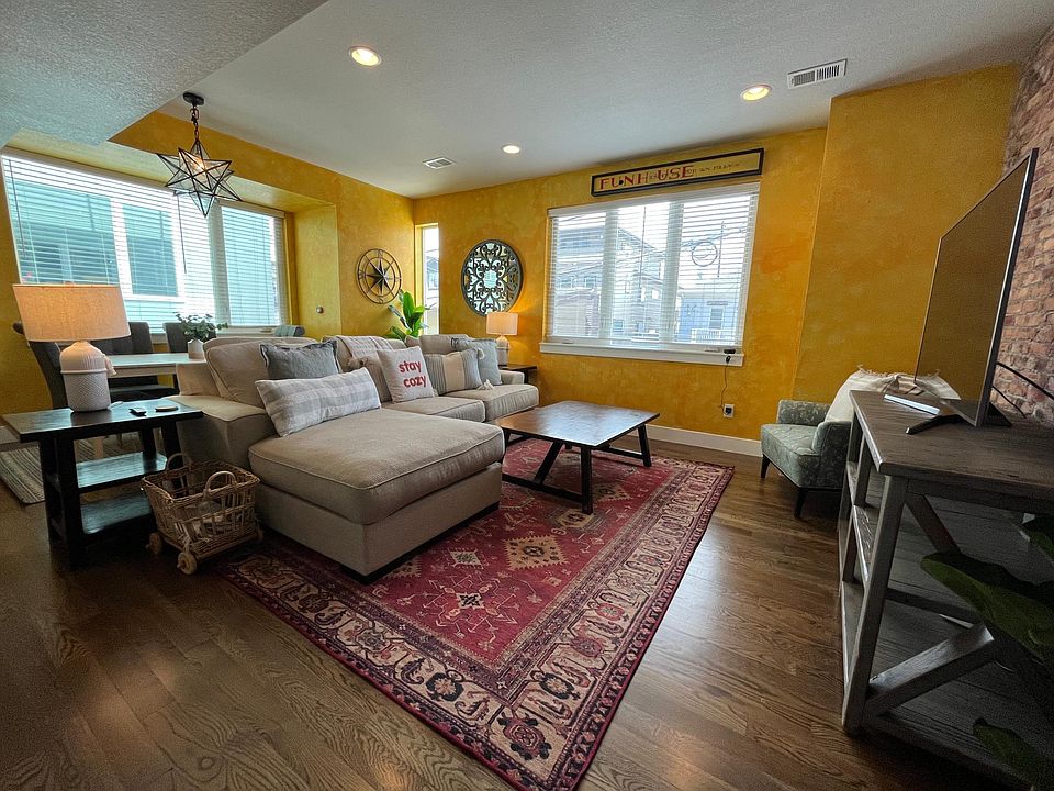 Beautiful and BRIGHT modern townhome - complete with all the fixings: 2 bed, 2.5 bath ** FULLY FURNISHED ONLY ** 2 car garage ROOF DECK w/ 360 degree view of the downtown Denver skyline AND mountain tops HOT TUB (located on Roof Deck) Wet bar (located on Roof Deck) Stainless steel appliances Washer/dryer units Quartz counter tops Real hardwood floors Brick accent wall PET-FRIENDLY Nest smoke / CO alarms Nest door lock Nest thermostat Ring doorbell Ring security camera Perfect location whether you need to drive downtown or head to the mountains! 1/2 block to Hallack Park and a short walk to Mile High Stadium. Trash/recycling and water included in Rent. Monthly Xcel and internet are tenant's responsibly. One year lease. Utilities included: trash/recycling and water. $3,450/month rent. $3,450 security deposit required. PET-FRIENDLY.