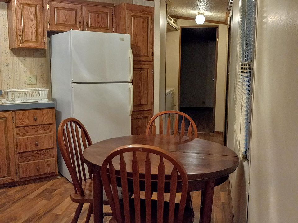 Well kept mobile home on extra large private lot in small quiet community. Newly painted throughout. Off street parking. Large storage shed. Currently has refrigerator, stove, washer, dryer. New water heater,and softener. Open concept living room /kitchen with bar area. Deck and patio. Privately owned, no lot rent. Renter pays all utilities, and maintains yard and driveway. Renter also keeps salt in the water softener. Pets are allowed with approval. Plenty of room for fenced in area.