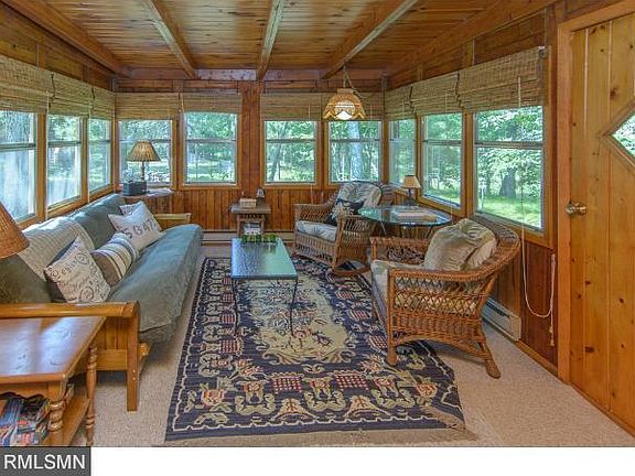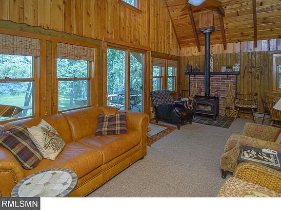 Escape to this adorable 2BR chalet offering 190 feet of shoreline/end-of-road privacy/T&G knotty pine interior/wood-burning fireplace/cathedral beamed ceiling/3-season sun porch/brand new bath/lakeside deck/convert the 16x20 garage into a guest house/includes a 24x28 garage pad!