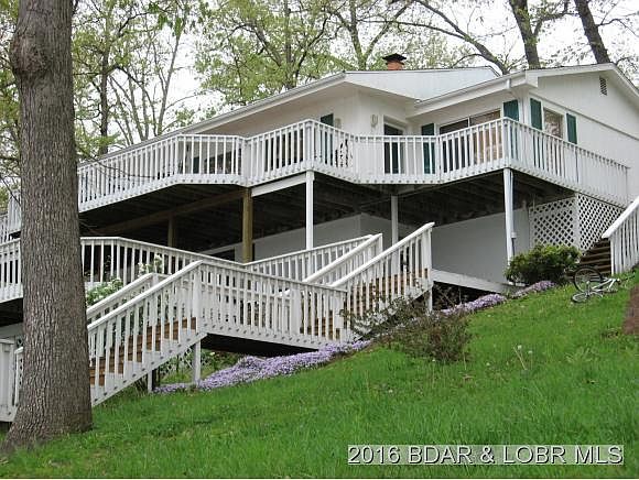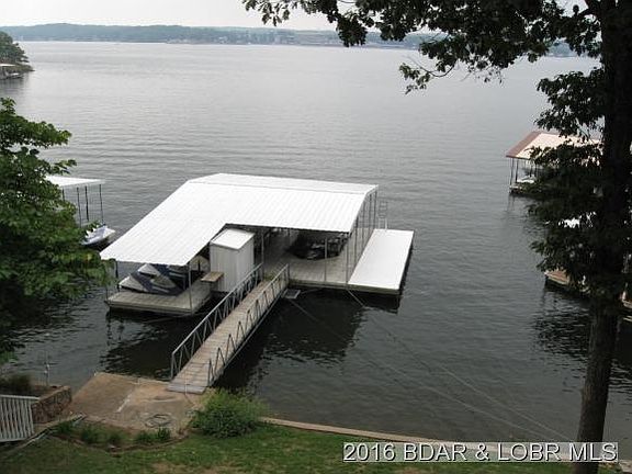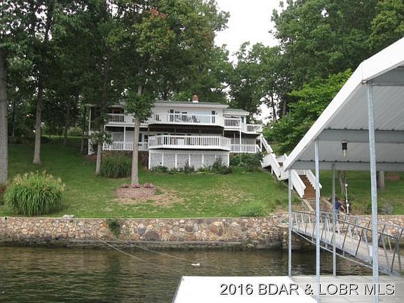 Enjoy the panoramic views from either of 2 large decks, screened porch, living room, master suite , new hot water heater,2 slip boat/swim/pwc concrete dock. 120 ft. stone sea wall w/deep water year round, and a great history of fishing! Located in an upscale neighborhood just minutes to golf course & movie theater; this lovely house is on paved road right to your over sized 2 car garage. Master suite lower level; 2 other bedrooms and open kitchen/living area w/stone fireplace on main level. Very large lot allows for your vision to happen; playground, pool, fire pit; whatever.Garage is over sized 24 X 30 with 9 ft walls.Paved parking area for 6 + vehicles. If your dream is a lake house for family, retirement and/or rental this is the one.