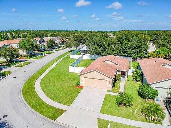 Welcome home to this light and bright 3 bedroom, 2 bathroom, 2 car garage, open floor plan home nestled on an extra-large CORNER LOT in the beautiful New River Lakes community. The interior features an open layout living room with kitchen pass through, inside laundry, durable bamboo wood laminate flooring throughout living/guest bedrooms, and brand new porcelain tile in both bathrooms. A tastefully decorated kitchen includes granite countertops, breakfast bar, porcelain tile, and large eat-in space overlooking your private back yard. Easy maintenance white vinyl fencing encompasses the yard and beautiful pavered patio. New A/C condenser and all appliances are included in the sale! NO CDD fees, and only $96/month HOA which includes a community pool, playground, tennis courts, basketball courts, multiple parks, and basic cable. Within walking distance to the elementary school and the community pool & park is just 4 houses away. Ideal location with easy access to I-75, USF, Wiregrass Mall, Premium Outlets, and Tampa. Clean, move-in ready, and can close ASAP. Call for your showing today!