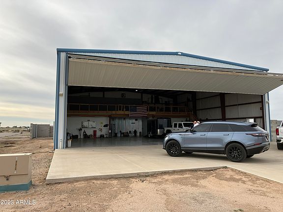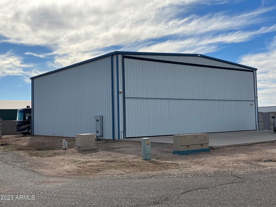 3600 sq ft red iron freespan hangar (full ownership/no ground lease) located in Ak-Chin's Regional Airport. Also includes a 1200 sq ft loft and a office/living quarters with bathroom and laundry room. Epoxied flooring! Property is just under 1/2 acre with runway access!! Approximately 50 foot wide automatic door. 400 amp service! Runway dimensions are 4751 feet long and 50 feet wide. City Water! Centrally located between the City of Maricopa and the City of Casa Grande. Only a few miles from Casa Grande Regional Airport.