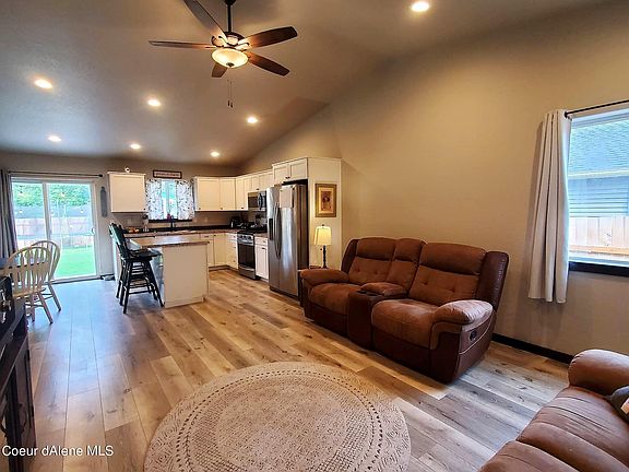Built in 2020 this lightly lived in 3 bedroom 2 bath rancher sits in the heart of Spirit Lake. Home is in excellent condition. Open floor plan with vaulted ceilings, luxury vinyl plank flooring and plenty of recessed lighting. Large kitchen for the chef in the house with custom soft close cabinets, center island and stainless steel appliances. The master bedroom has plenty of space with a large picture window into the completely fenced back yard. Raised garden beds are ready for planting. Surrounded by everything that Idaho is about. All the hiking, biking, boating, fishing, hunting and outdoor fun you could ever want. Located in the Lakeland school district and just minutes to the public beach and boat launch on Spirit Lake.