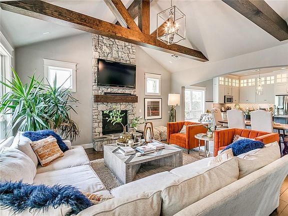 The word is WOW!! Check out this beautiful home with all the extras. Great room with open kitchen and tall ceilings with beams accenting the living room, upper end surround sound system in living with speakers on patio. Kichen cabinets go all the way up with top row with glass doors that can really let you decorate. Master with shower with seat and linen hutch and barn door to bath. 4 bedroom was oversized study that was made into a fourth bedroom with adding a closet at planning stage. It still has double doors and transom window so it could still be used as a 3 bedroom with a study. Patio was extensively expanded after construction. You could live out there, Hot tub and lights will stay with the property on the back patio, including the speakers with sound system out there. Windows in living spaces encased with wood and a lovely box seat in dining area with extra wood trim. The neighborhood has all kinds of amenities, with pond and walking trails and access to the pool/clubhouse