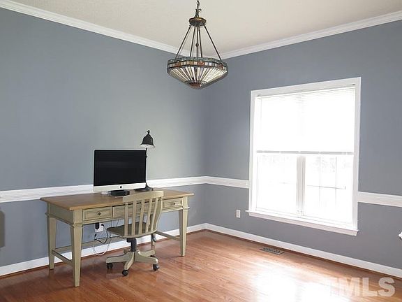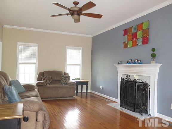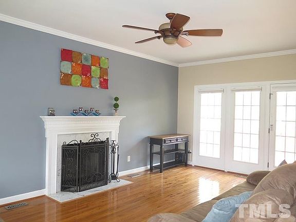 Wonderful traditional style home in convenient N Raleigh location. Hardwoods throughout 1st floor. 9 ft ceilings. Large living room features wood burning fireplace. Formal dining room. Bright & open kitchen offers center island and stainless steel appliances. Spacious master suite has 2 walk in closets, tile bath floor & garden tub with separate shower. Bonus room has hardwood style laminates. Fantastic, fenced backyard with wooded buffer. Deck + oversized brick patio. Located at end of quiet cul-de-sac.