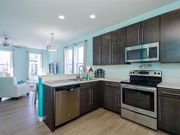 Be on vacation every day in this amazing New Town home with show stopping curb appeal! Enjoy a huge front porch, a deck off the Mstr Bdr, large private patio with pergola and an attached garage. This charming home is in the popular Beach District. Features inc 2 BD (plus Bonus Rm), 2.5 BA, 1,300 s/f, an open flr plan, laminate flrs on the main level, 9 ft clngs, recessed lighting, transom windows in the Liv Rm and stairway, SS appl, sm top stove, upgraded 42 inch cabinets with on-trend hardware, rear staircase, raised height vanity in the Mstr Bath, AT&T fiber for internet equip, Phillips Hue lights (work with Amazon Alexa) and more. The Mstr Suite has a large W/I closet and door to the upper deck. The LL has an egress window and bath R/I for future finish if desired. Washer, dryer and refrig are included. Enjoy easy access to incredible amenities inc a pool, lazy river, Blue Agave pool, parks, community garden, amphitheater, sand beach, shopping and restaurants. SO MUCH TO LOVE!