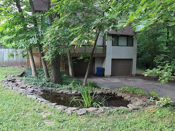 This stylish and secluded 1980's contemporary is updated and ready for its second owner! Hidden on a large wooded lot in a quiet cul-de-sac in SE Springfield this home features soaring vaulted ceiling in Living room, wood burning fireplace, New carpet, Refinished Hardwood flooring, Tile flooring, and newer appliances. Wooded lot has privacy fencing and backs to Nature area. Super Deep garage has plenty of room for benches and shelves. Taxes show lot to be much smaller than it really is.