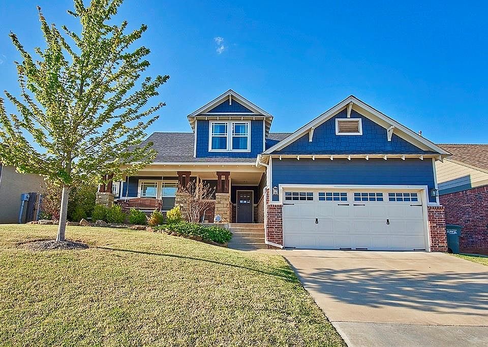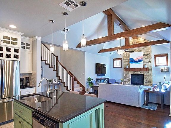 Hurry home to this beautiful Craftsman Style retreat in the much desired neighborhood of Town Square! Once entering the neighborhood, everything from the peaceful fishing pond, fountain, walking trails, etc. to the cheerful homes lining the streets, you're sure to want to stake your claim and not leave. This particular 3 bed, 2.5 bath home welcomes you inside through a cozy front porch and into a beautiful open-floor plan setting with lots of natural light. The living room has a gorgeous vaulted/wood-beamed ceiling, a floor-to-ceiling stacked stone fireplace, and is open to the adorable kitchen. There are 3 large bedrooms on the main floor, with an additional room and half-bathroom upstairs that could be utilized as a game-room, theater-room, home-office, fourth bedroom, or whatever else your heart might desire! Town Square also features a resort-style pool, clubhouse, fitness center, community garden, and playground! Schedule your showing today!!!