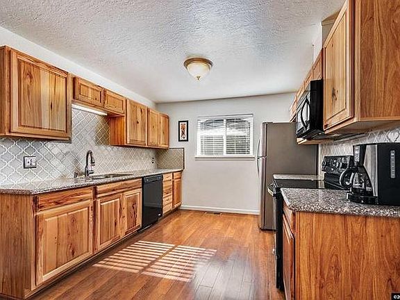 Complete remodel. Kitchen walls were taken down to the studs. New everything! Granite counters, New cabinets/sink, Matching appliances, New sliding door in living room, new interior also exterior paint, new flooring, double pane vinyl windows! Come and see this Beautiful remodel. Mountain views from the back.