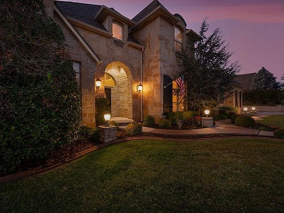 This stunning Coffee Creek home boasts meticulous landscaping and a beautiful stone exterior, located conveniently near the thriving town of Edmond with quick commutes to, uptown groceries, Mitch Park, the HOA pool, and community trails. Step inside to a grand foyer with a captivating chandelier and curved staircase, leading to a formal living area with a wood-paneled cathedral ceiling, fireplace, and wet bar. In the open kitchen and living room area, you'll find another fireplace, lighted built-ins, and wood floors, along with a large island boasting a prep sink, double convection ovens, custom cabinetry, and a cozy breakfast nook. The elegance continues into the primary suite, which is complemented by a spacious primary bathroom and an exceptionally large, walk-in closet. Upstairs, find three additional bedrooms and a versatile flex space. This home includes plantation shutters, a heated outdoor kitchen, an outdoor gas fireplace, and ample storage, making it the epitome of high-caliber living.