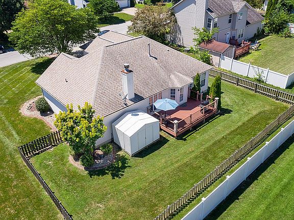 Over 2700+ sqft 3 bed, 3 bath 1 story featuring full, finished basement! Open split bedrm floorplan! Vaulted ceilings & hand scraped wide plank hardwood flooring grace entry, dining, family rm, kitchen & hallways. Elliptical windows let in abundant natural light! Family room w/gas fireplace opens to a custom kitchen w/soft shut cabinets, stainless app, granite counters, custom tile backsplash, island w/bar seating & breakfast bay w/ access to maint. free deck. Master retreat offers custom walkin closet, adult ht. granite double vanity, soaking tub, sep shower, private commode & linen, tile flooring. 2 Guest bdrms, full guest bath & laundry complete the main. Basement: office area w/custom shelving, tile flooring, massive family rm, game area, stacked stone fireplace and wet bar[double sink, granite bar& back counter, tile flooring]; full bath w/ adult ht vanity & tile floor; unfinished area for storage, radon mitigation system, gas water htr, HVAC w/ humidifier, sump w/battery back up.