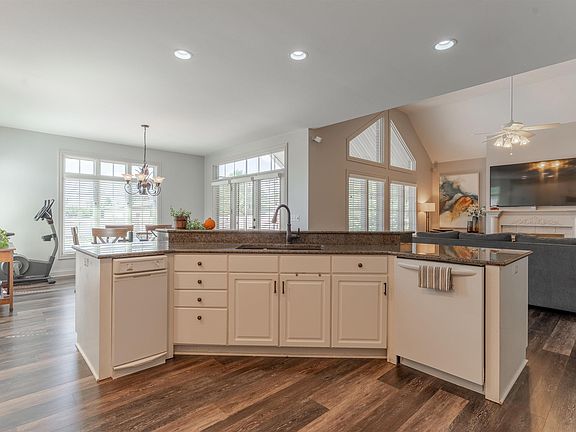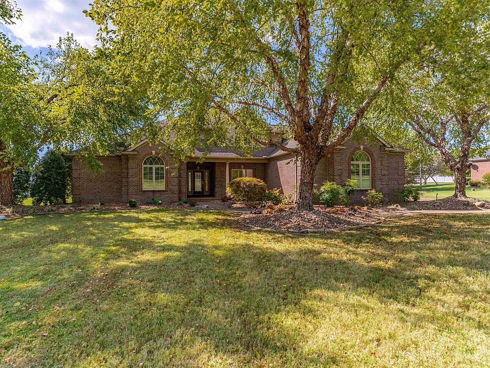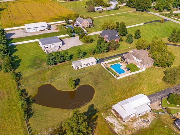 Welcome to this 2.84-acre property offering the perfect blend of a traditional brick home with a lake view, an in-ground pool, and versatile outbuildings for horses, RVs, hobbies, or car enthusiasts. This 1.5 Story home features 4–5 bedrooms, 3.5 baths, and a 3.5 car side-load garage. The main level includes an open kitchen with granite countertops and raised island bar, a cathedral-ceiling family room with fireplace, a screened-in porch overlooking the pool and lake, a spacious owner’s suite with fireplace, tray ceiling, walk-in closet, and large bath, plus a main-level office/den with French doors. Upstairs offers a bonus room/5th bedroom with lake views plus three additional bedrooms and two full baths. Outdoors, enjoy the 21x44 in-ground pool with new liner and pump, the private lake, and updated landscaping with irrigation and evening lighting. Recent updates also include new HVAC units, garage doors, privacy vinyl fence and fresh interior paint. For those needing extra space, the property offers a 24’x40’ pole barn with electric and a 21’x44’ extension barn currently set up with two horse stalls and a chicken coop. Located on the edge of Evansville and Newburgh, just minutes from shopping, restaurants, major healthcare, and walking trails—yet offering the privacy and space of a true county setting. The perfect balance of convenience and country feel!