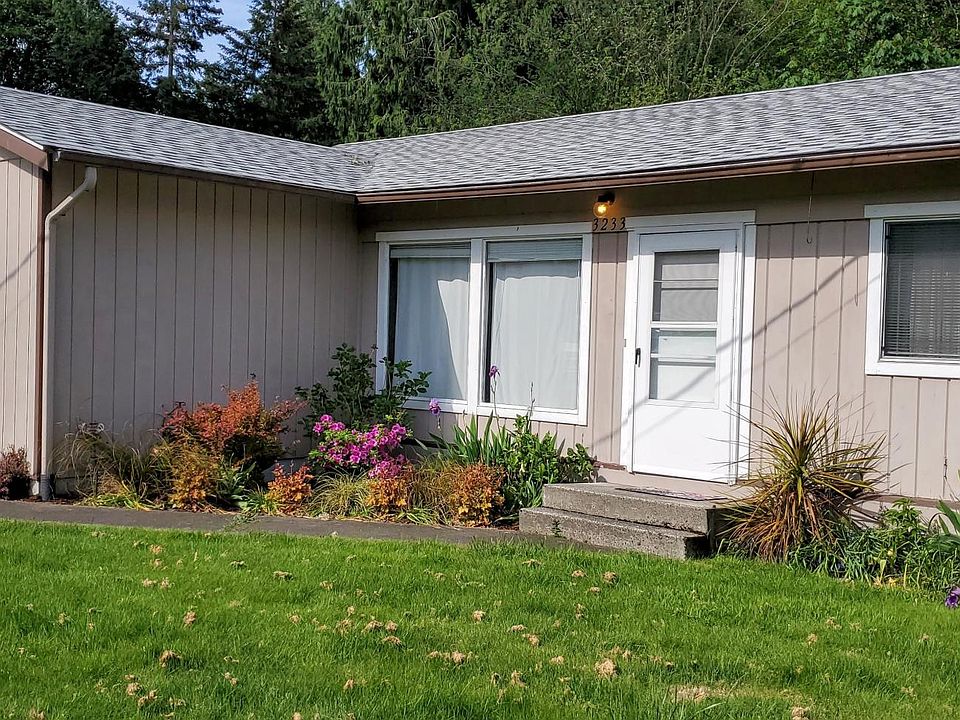 This home is available for touring by appointment. No dogs allowed, no exceptions. Please read the entire description and understand the minimum qualifications listed below before applying or scheduling tour appointments. This amazing home is situated on a private, 5-acre country-like setting with walking trails! It is located just 10 minutes from downtown Olympia and local amenities. This home features 2 spacious bedrooms and 1 full bath, a laundry center, and a single car garage with plenty of storage room and additional parking spaces off street. It also features a large kitchen with a luxurious quartz counter top and movable island. You will be delighted with new wood plank flooring and classic tongue and groove wood ceilings with exposed beams and calming color schemes. You will have private space to spread out with a fenced back yard and a deck to entertain friends and family or just listening to the birds sing. As a bonus, you'll have garden beds for growing your own veggies! Peaceful, quiet, and private...perfect! Important details: No smoking of any kind (tobacco or marijuana), no dogs, must keep the home clean and must maintain yard. Prospective tenants will be thoroughly screened for background, employment, and credit. Any applications with insufficient income, incomplete work history, criminal records, evictions, or poor credit will be automatically denied. The successful applicants will be mature, responsible and have: Excellent verifiable rental history for the last 2 years Solid, consistent work history of at least 2 years Minimum household income of $6,500 per month Minimum Credit score of 680 No bankruptcy or negative credit (collections) or evictions No criminal record No dogs, no smoking 12 month lease. Tenant responsible for all utilities except water. No dogs, no exception. No smoking of any kind (tobacco or marijuana), must keep place clean and must maintain yard. Prospective tenants will be thoroughly screened for background, employment, and credit.