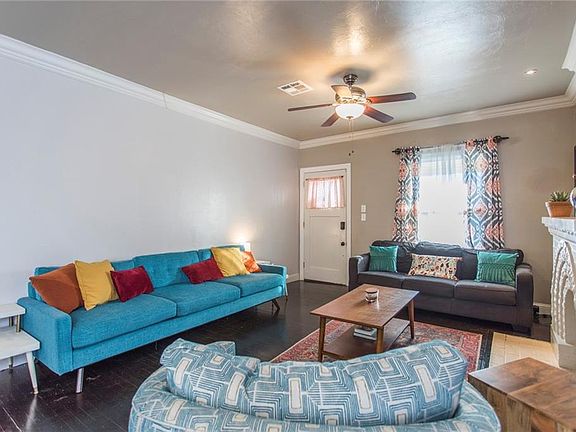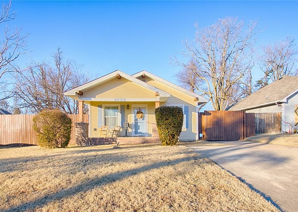 This will cared for 100-year-old bungalow has LOTS of modern updates. The kitchen and bathrooms have granite countertops. The kitchen has a large center island and the bathroom showers are professionally tiled. There are original hardwood floors throughput the home, with carpet in the master suites and ceramic tile floors in the kitchen and bathrooms. This home has an open floor plan with and archway between the kitchen and dining area. With high ceilings and crown molding throughout this home a spacious and polished feel. other PLUSES included updated plumbing and electrical work along with a brand-new Lennox XC25 AC Unit and NEW Duct Work installed in 2020. There is a privacy fence, and a spacious backyard for gardening or energetic children or pets to play in. There is an electric gate to the backyard and stand-alone garage. Centrally located in OCK charming Linwood Historic Neighborhood with quick access to I-44, I-40 and Downtown OKC. This is a must -see home.