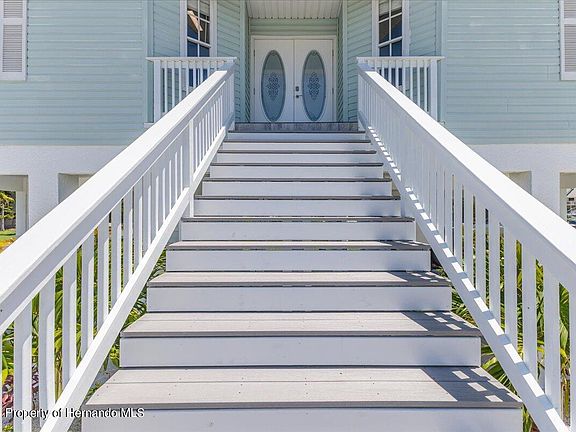 KEY WEST STYLE WATERFRONT HOME in the Coastal Community of Hernando Beach on Porpoise Canal... And Yes .. DOLPHIN are Frequent Visitors. Look at this Beautiful Location! This Three Level Home is Right Around the Corner from the Gulf of Mexico.. Just 5 Boating Minutes to the OPEN GULF. Backyard is 75 Feet on the Water with a New 10x20 Floating Dock Coming Soon! Come Feel Like You are on Vacation Every Single Day! Seawall is new in 2023. Double Door Entry to an Open Floor Plan with Vinyl Flooring Through Out. 3 Bedrooms, 2 Bathrooms, Living Room, Dinette, Kitchen, Another Room that could be a Den, Dining Room or an Office. Off of the Living Room is French Doors out to the Upper Verandah (Stairs to the bottom level is coming soon!) Large Kitchen with Granite Counters, Island, White Wood Cabinets & Pantry. The Third Level is the PRIVATE MASTER SUITE with Balcony for Your Morning Coffee or Nightly Wine while Viewing Our Colorful Sunsets. Located on a Water Cul-de-sac Area which offers privacy. 2019 Three Dimensional Roof. Home is virtually staged to give a buyer an idea of what it could look like furnished. All Located in the Quaint Coastal Community of Hernando Beach which offers Restaurants, Marinas, Gift Shops, Walking Trails Surrounded by Lakes, Fishing Piers... and Just Down the Road & Coast from WEEKI WACHEE RIVER..