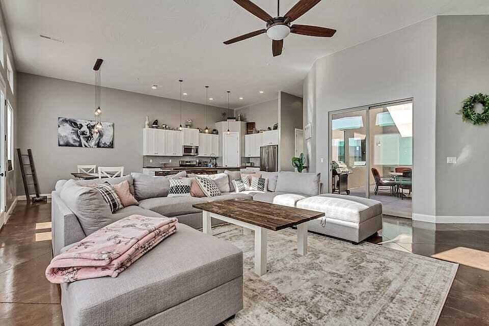 The Charlotte Home has a modern cabin feel, with it's soft plaid comforters, to white wooden texture tile back splash, this home is perfect for big family or friend get together, or a romantic get away. 5 bedroom 4 bathroom luxury home, with plenty of room, and activities to keep everyone occupied.