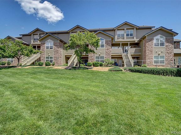 End-unit Penthouse Style Condo situated high up in Stone Canyon! Ideal location within walking distance of the community pool, 24-hour fitness, movie theater, banks, grocery store, vet clinic, & a greenbelt with walking trails for you & your pets! Easy access to Tower, Hampden, I-225, E-470, & more. Private condo on a quiet cul-de-sac type location boasting new paint, carpet, water proof Luxury Vinyl tile, hot water heater, dishwasher, stove, light fixtures, shower heads, toilet seats, door hinges, garage door remote, & brushed nickel handles/knobs. Bright & open interior with lots of natural light, windows on 3 sides offering views of the community, vaulted ceilings, & a gas fireplace! Washer & dryer included. Private location with a patio & plenty of shade trees. Spacious & grassy common areas & an attached 1-car garage! Book your showing today!!!